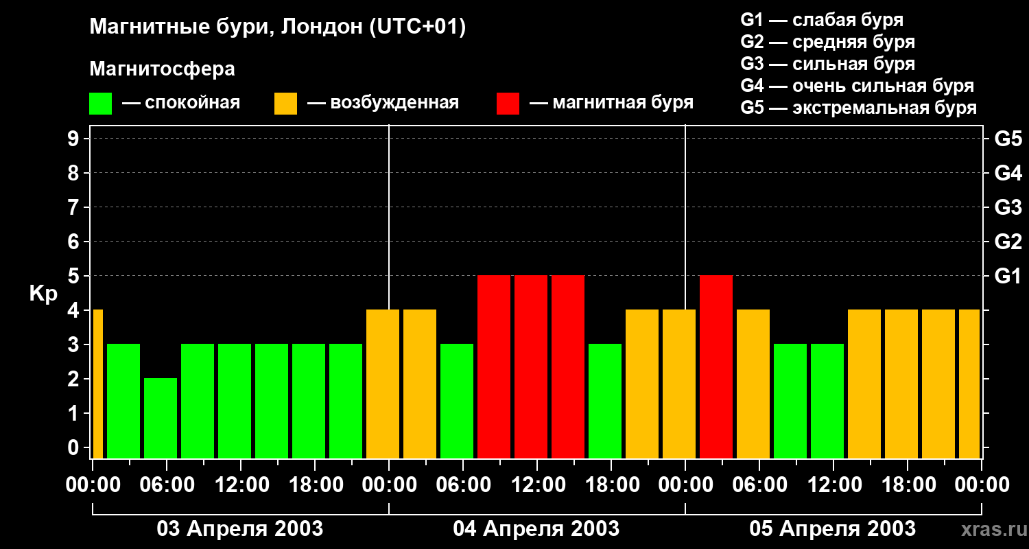 Магнитные бури в Лондоне — 5 апреля 2003 года