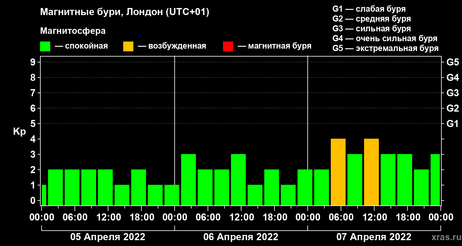 Магнитные бури в Лондоне 7 апреля 2022 года