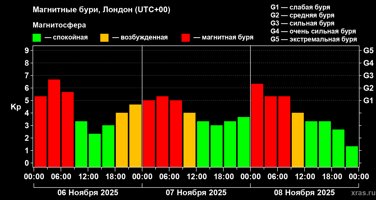 Магнитные бури в Лондоне 8 ноября 2025 года