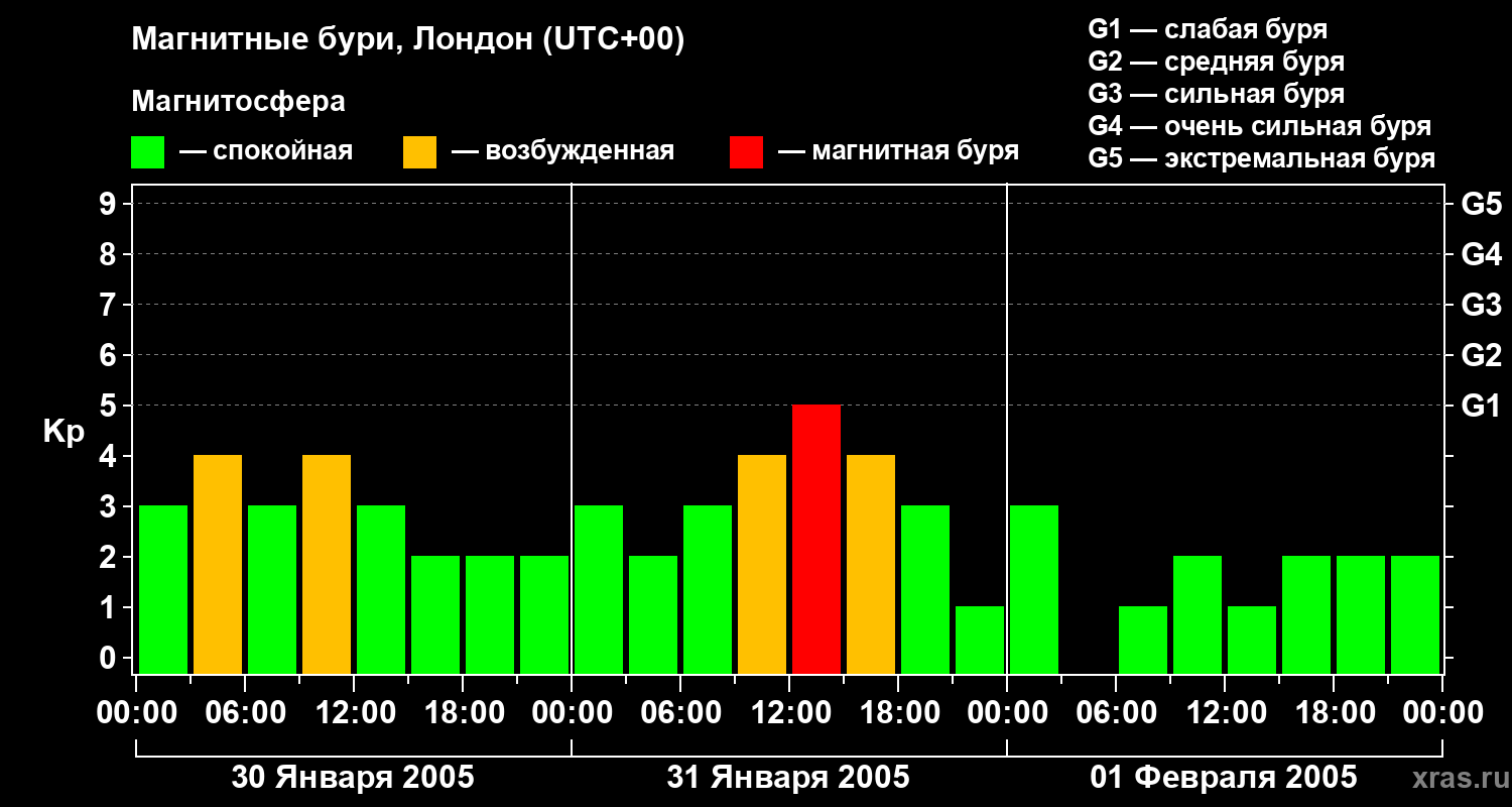 Магнитные бури в Лондоне — 1 февраля 2005 года