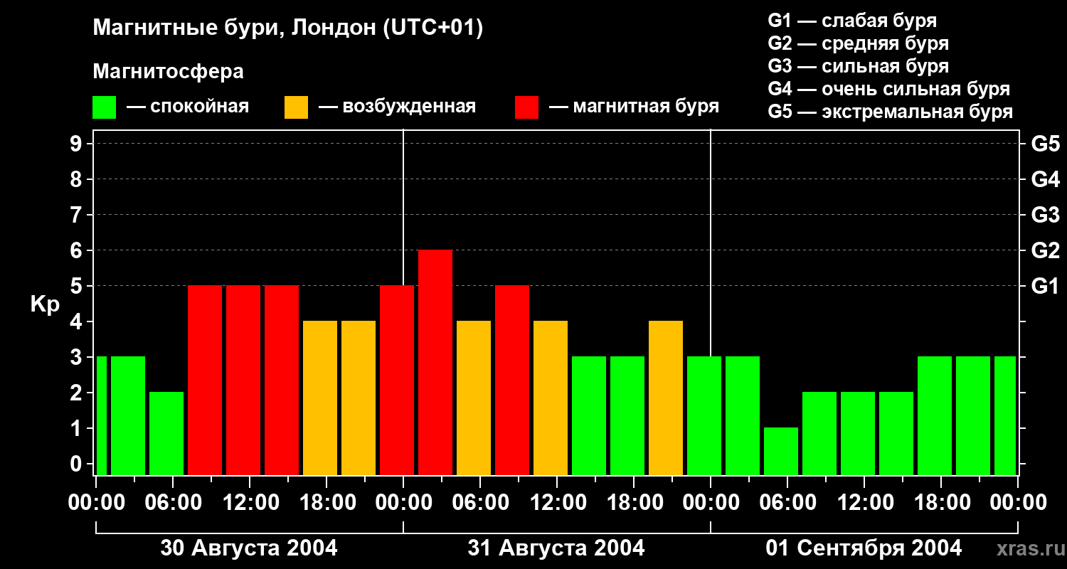 Магнитные бури в Лондоне — 1 сентября 2004 года