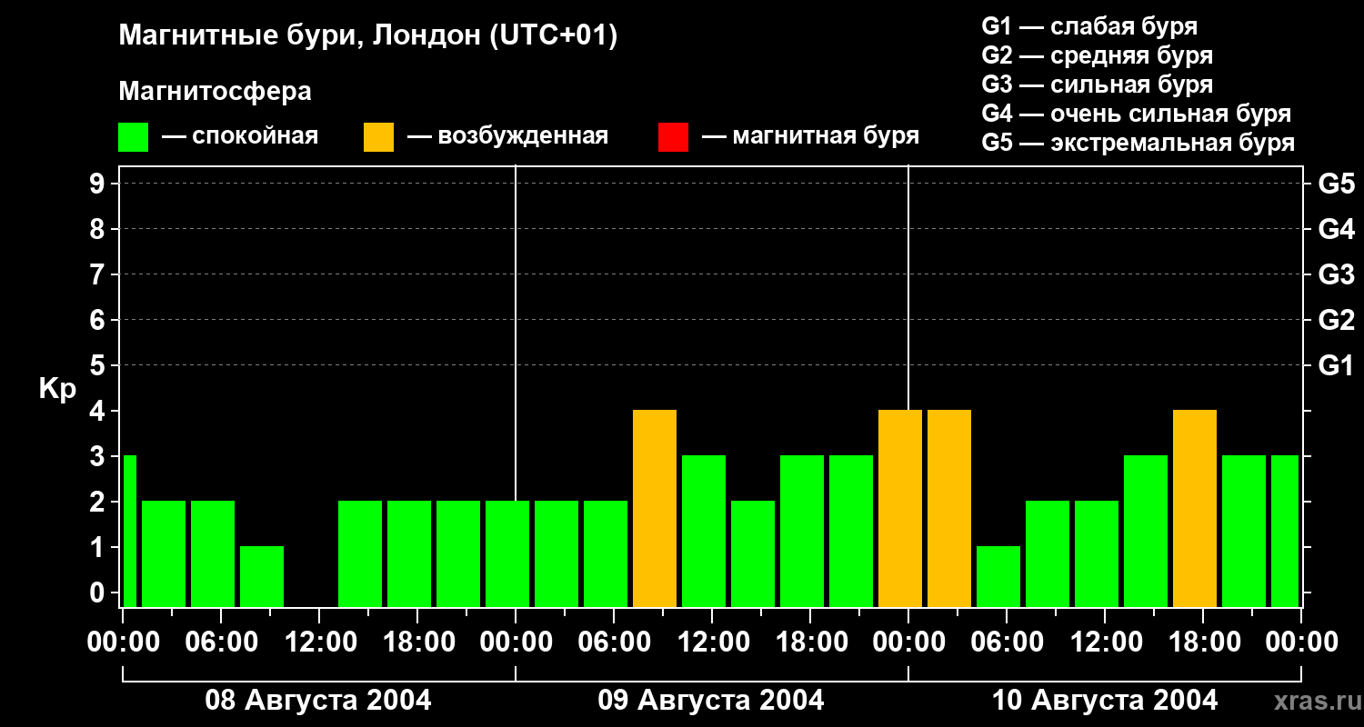 Магнитные бури в Лондоне — 10 августа 2004 года