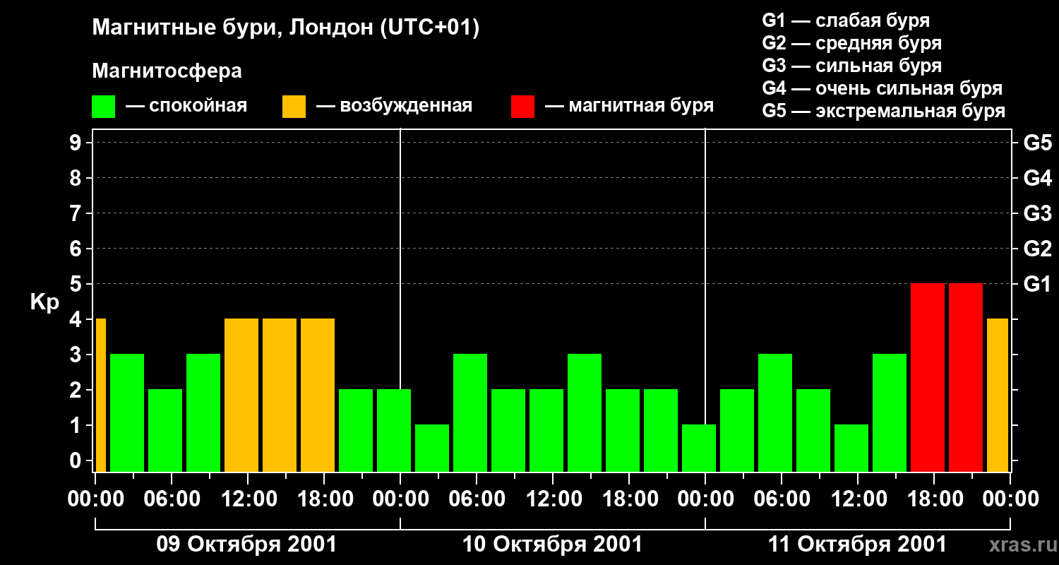 Магнитные бури в Лондоне — 11 октября 2001 года