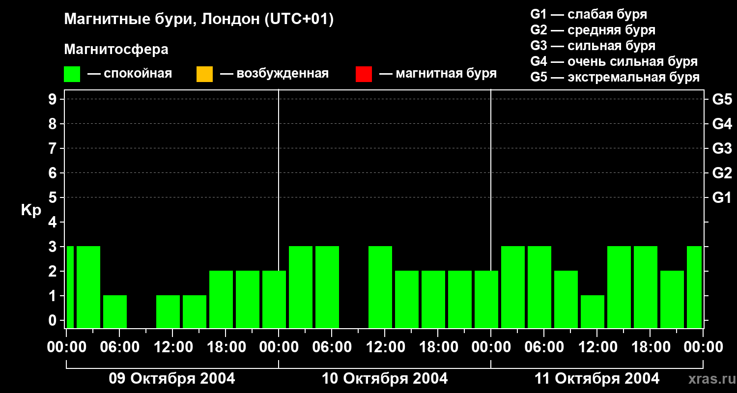 Магнитные бури в Лондоне — 11 октября 2004 года