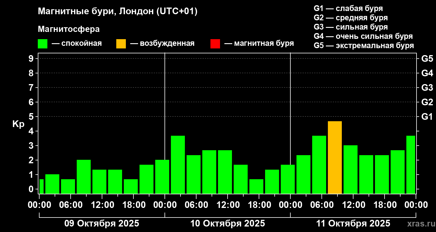 Магнитные бури в Лондоне — 11 октября 2025 года