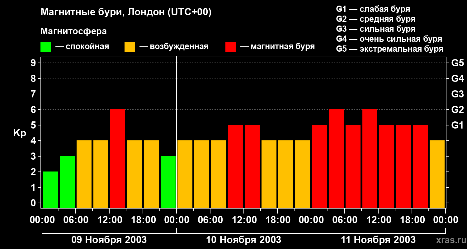 Магнитные бури в Лондоне — 11 ноября 2003 года