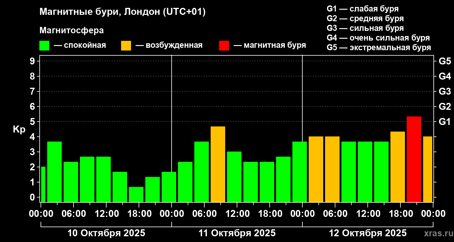 Магнитные бури в Лондоне — 12 октября 2025 года