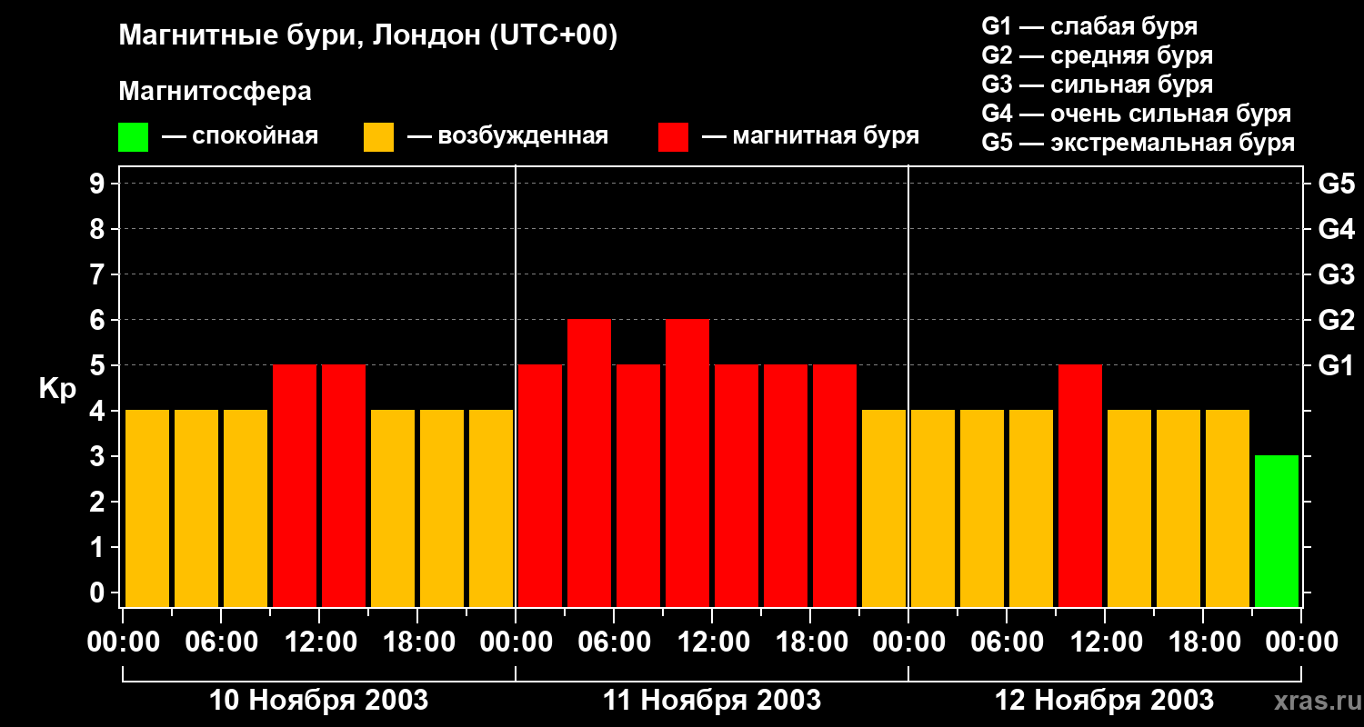 Магнитные бури в Лондоне — 12 ноября 2003 года