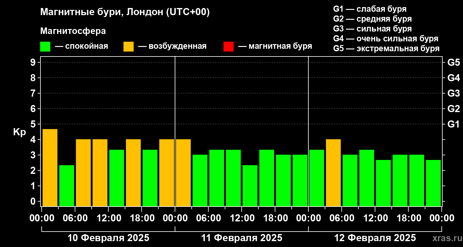 Магнитные бури в Лондоне 12 февраля 2025 года
