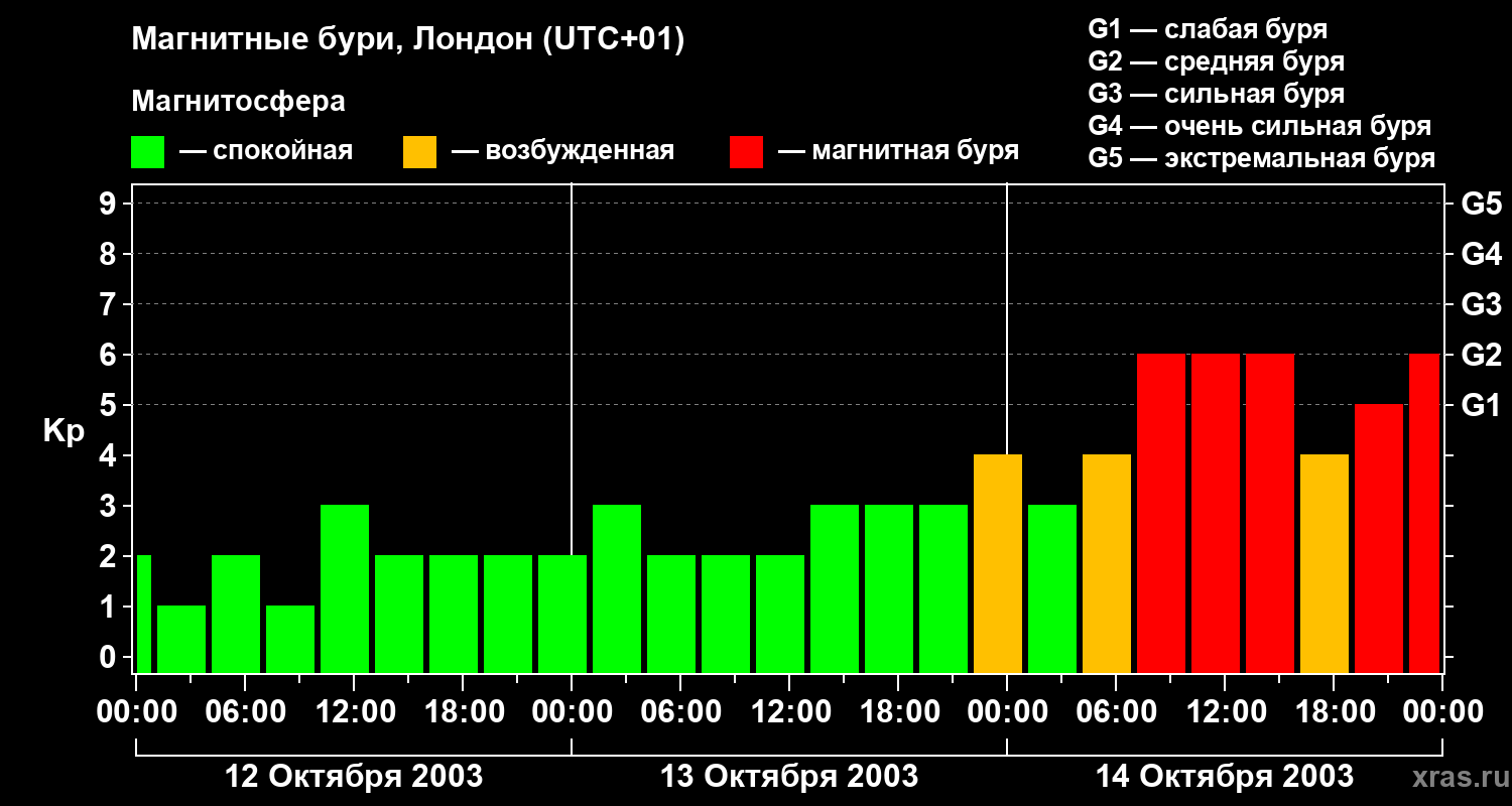 Магнитные бури в Лондоне — 14 октября 2003 года