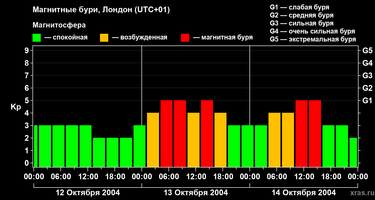 Магнитные бури в Лондоне — 14 октября 2004 года