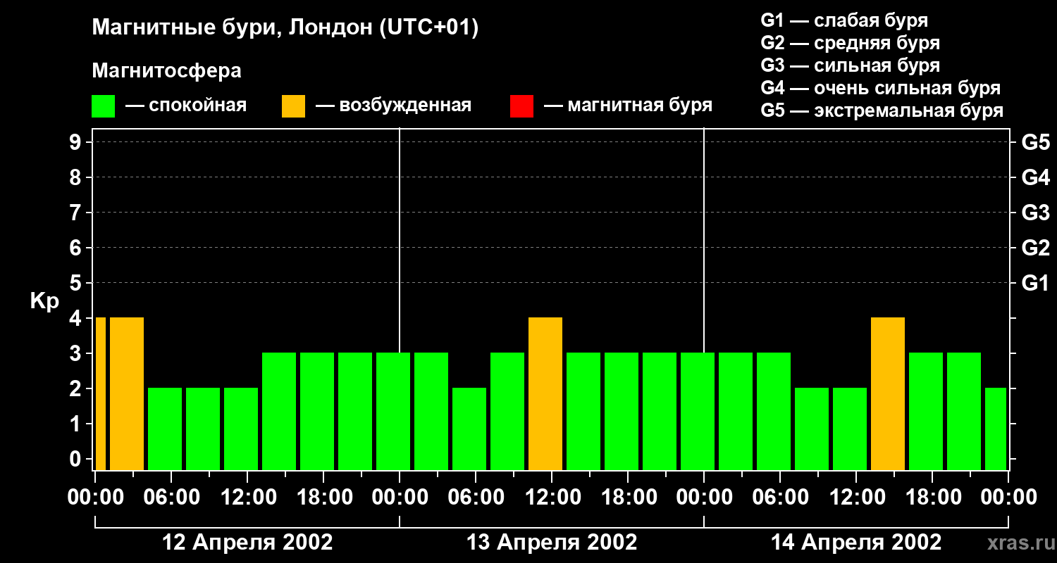 Магнитные бури в Лондоне 14 апреля 2002 года