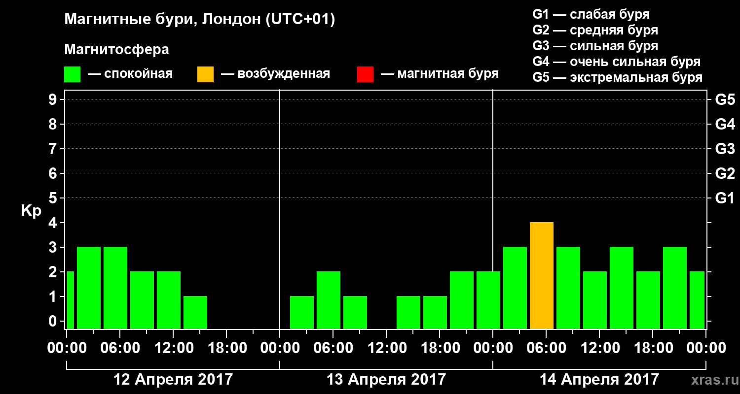 Магнитные бури в Лондоне 14 апреля 2017 года