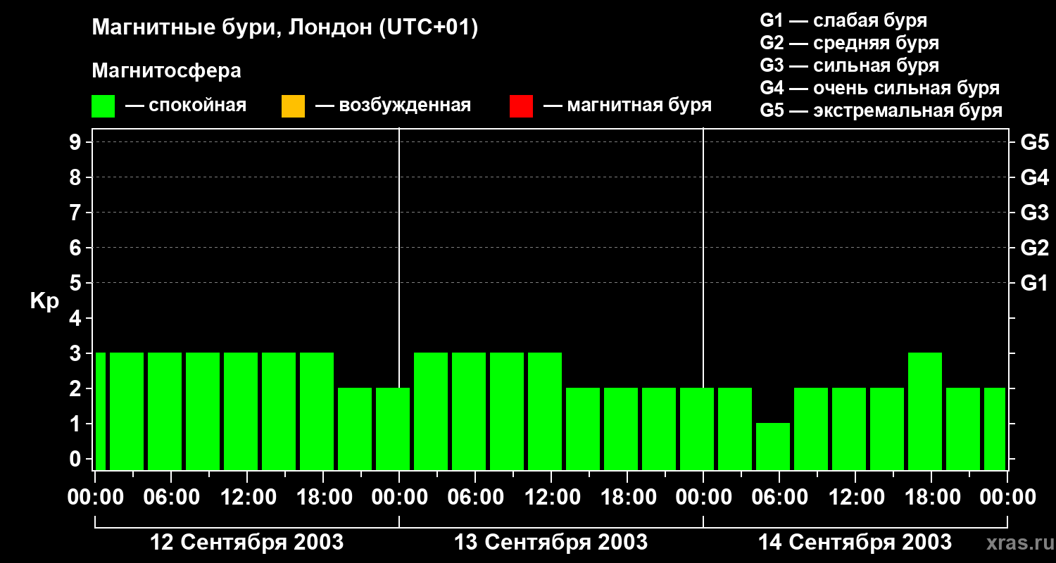 Магнитные бури в Лондоне — 14 сентября 2003 года