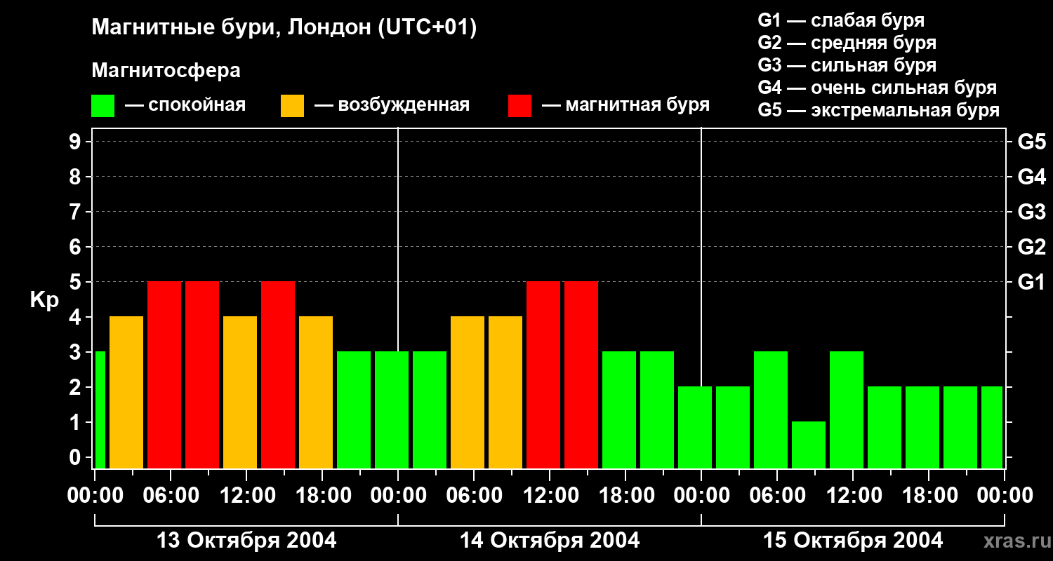 Магнитные бури в Лондоне — 15 октября 2004 года