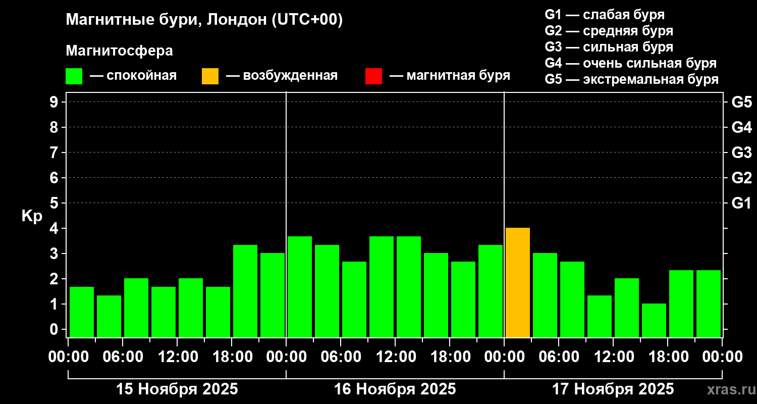 Магнитные бури в Лондоне 17 ноября 2025 года