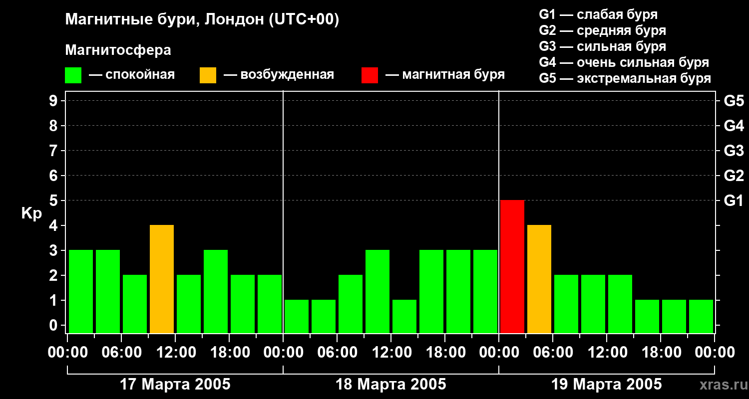 Магнитные бури в Лондоне — 19 марта 2005 года