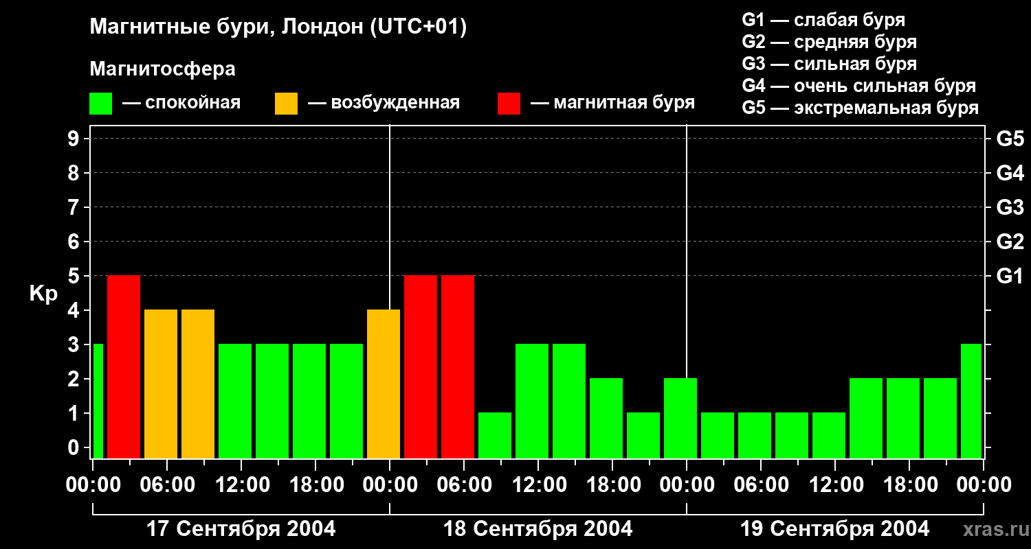 Магнитные бури в Лондоне — 19 сентября 2004 года