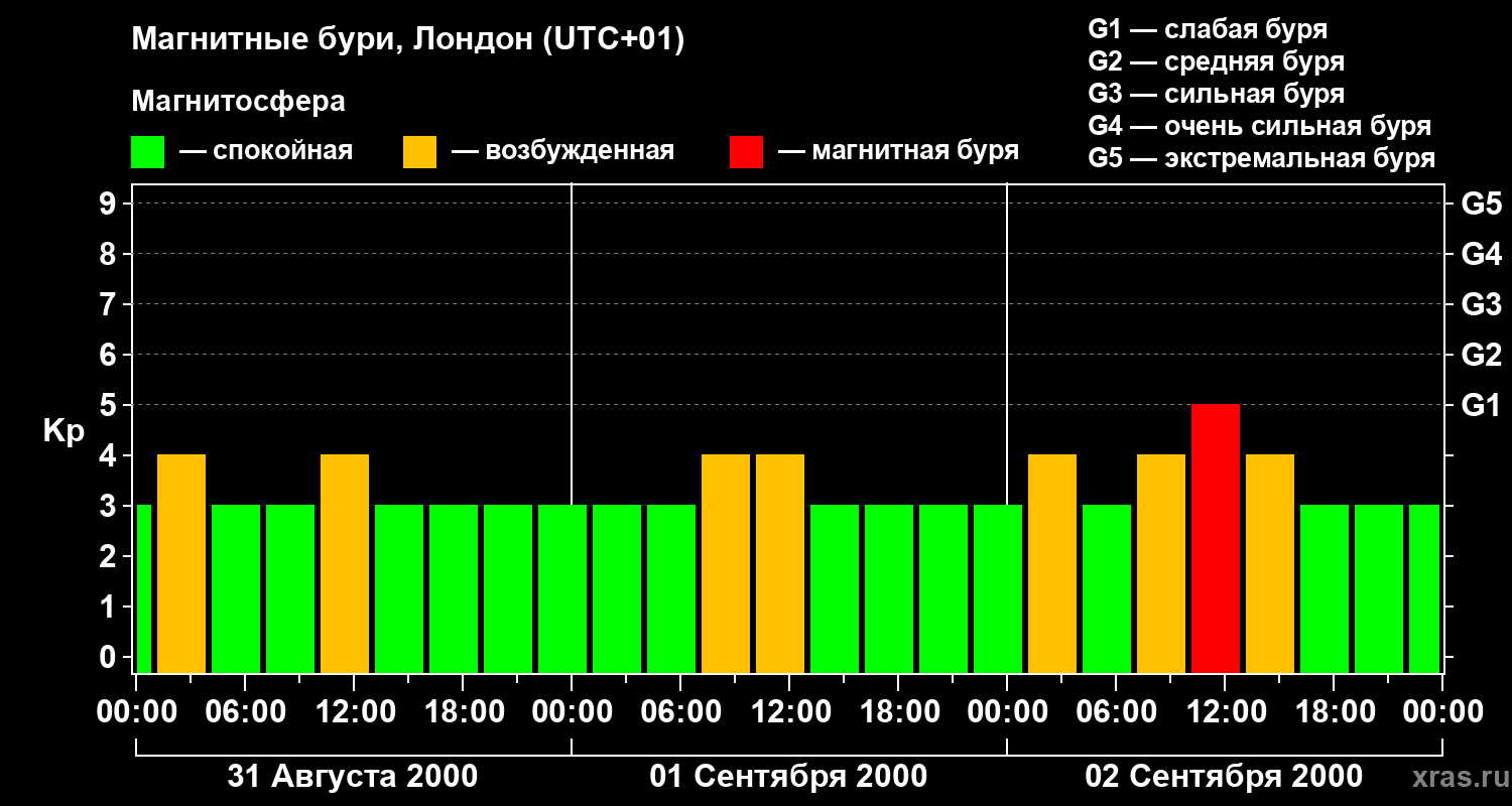 Магнитные бури в Лондоне — 2 сентября 2000 года