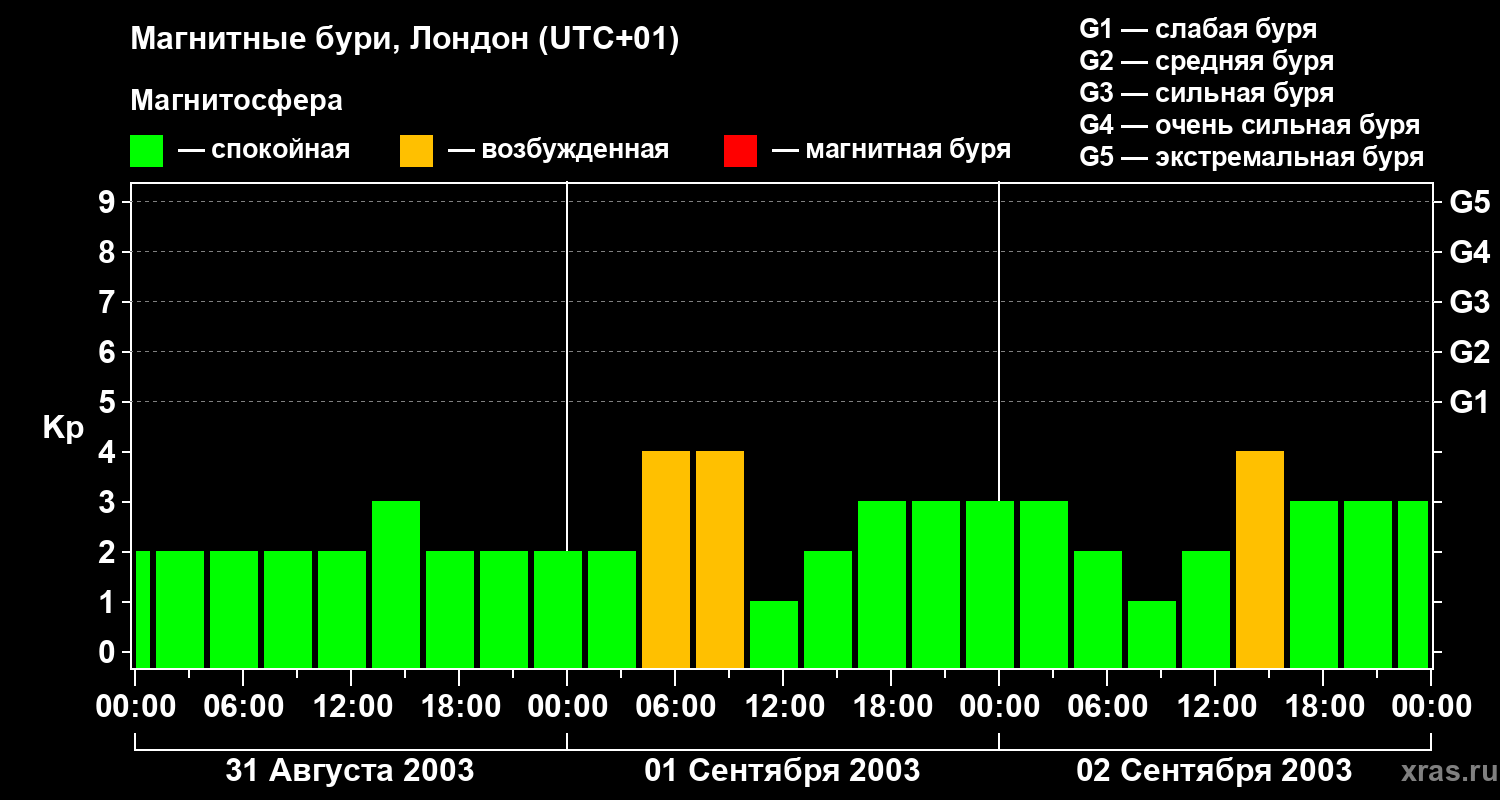 Магнитные бури в Лондоне — 2 сентября 2003 года