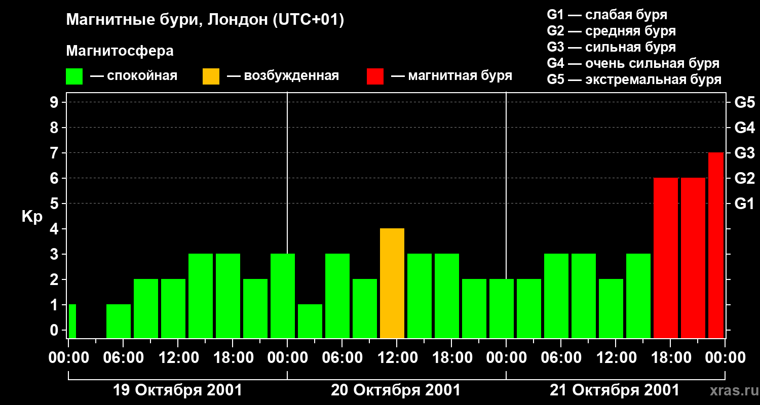 Магнитные бури в Лондоне — 21 октября 2001 года