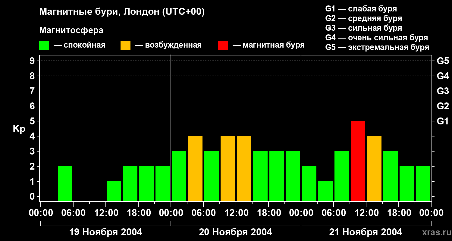 Магнитные бури в Лондоне — 21 ноября 2004 года