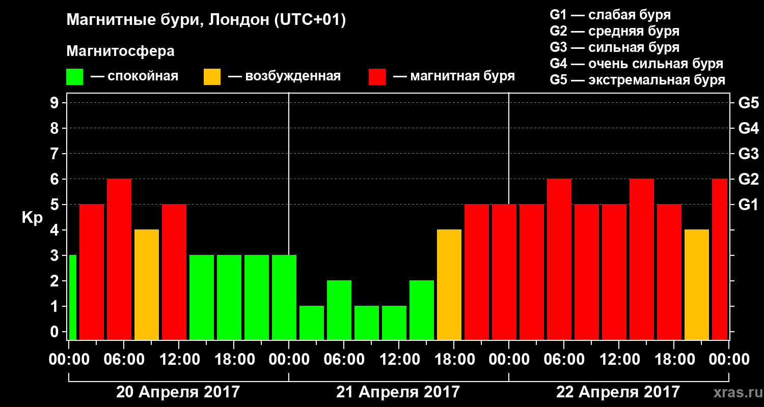 Магнитные бури в Лондоне 22 апреля 2017 года