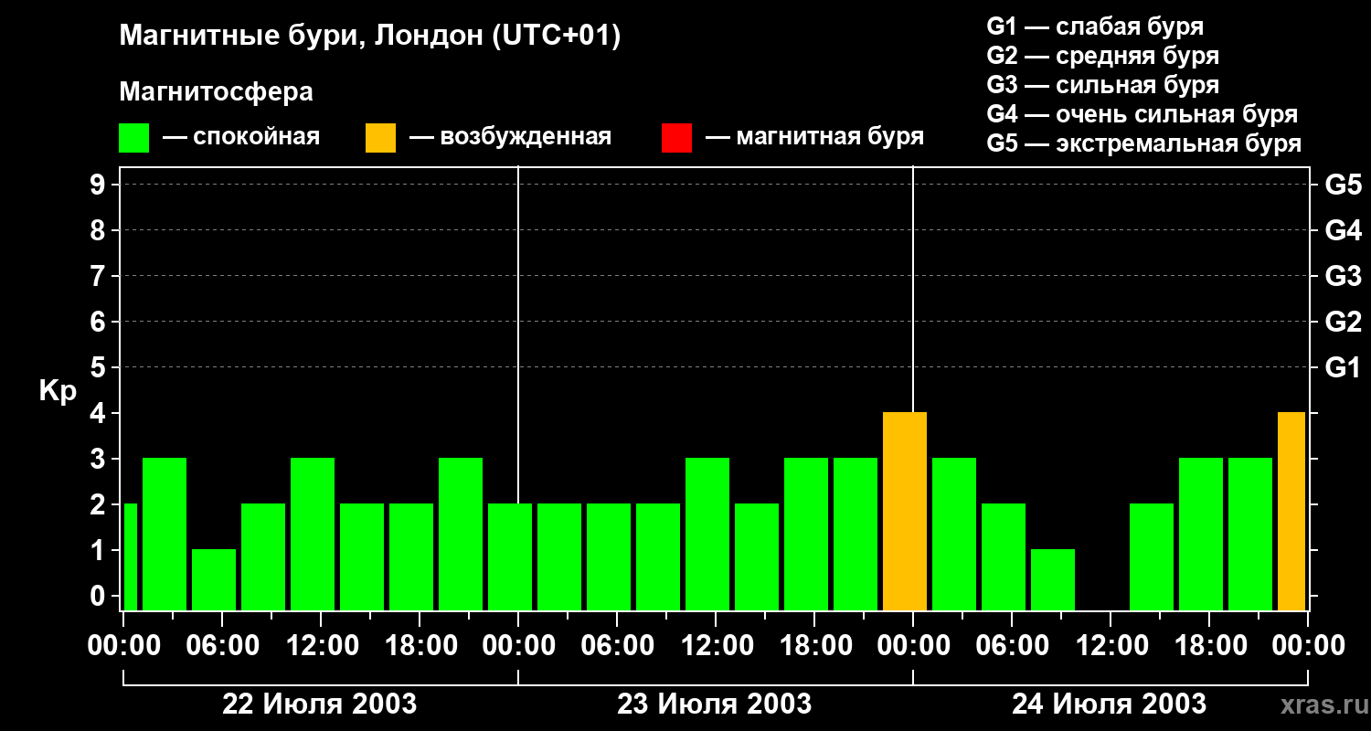 Магнитные бури в Лондоне — 24 июля 2003 года