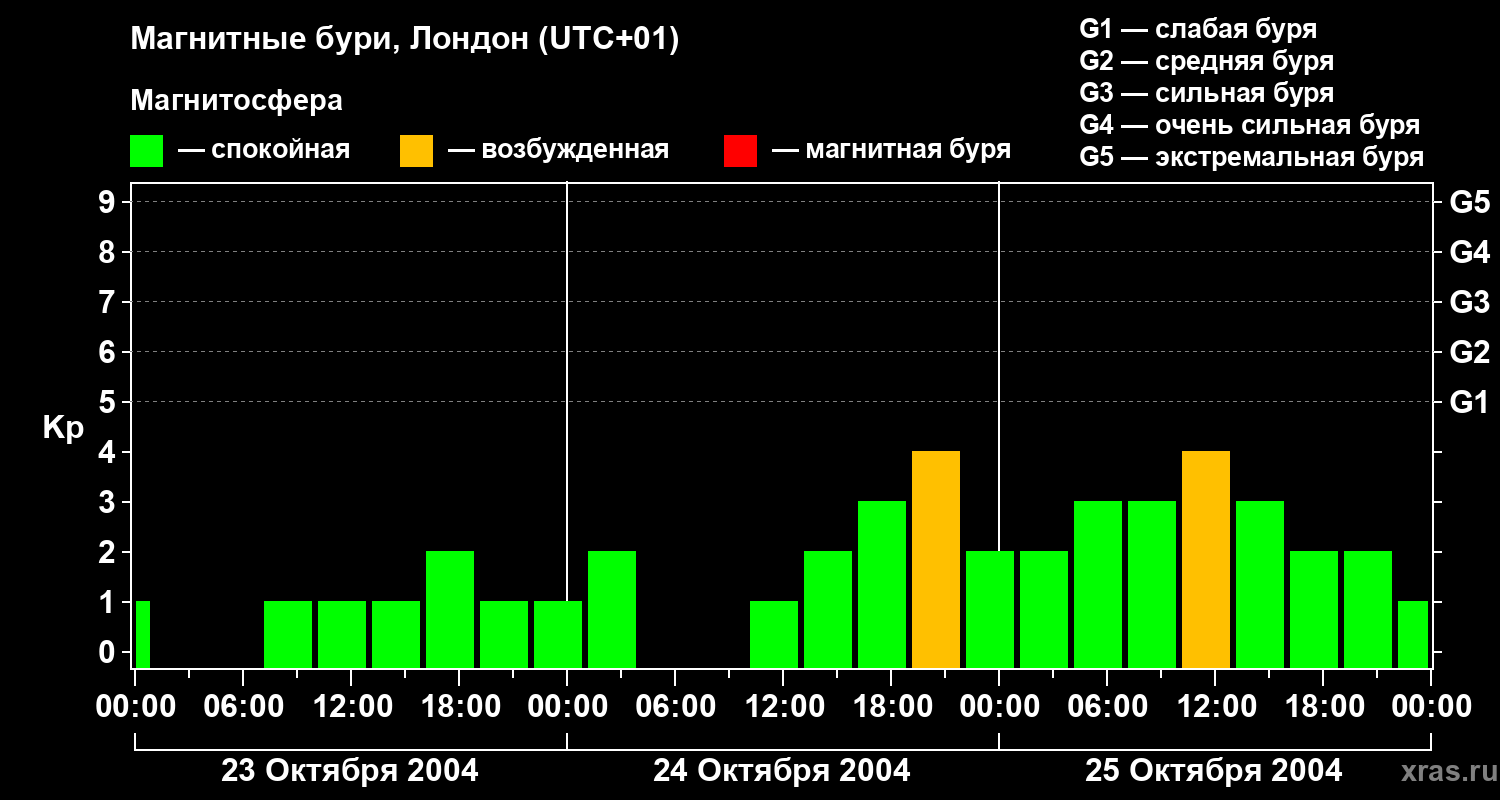 Магнитные бури в Лондоне — 25 октября 2004 года