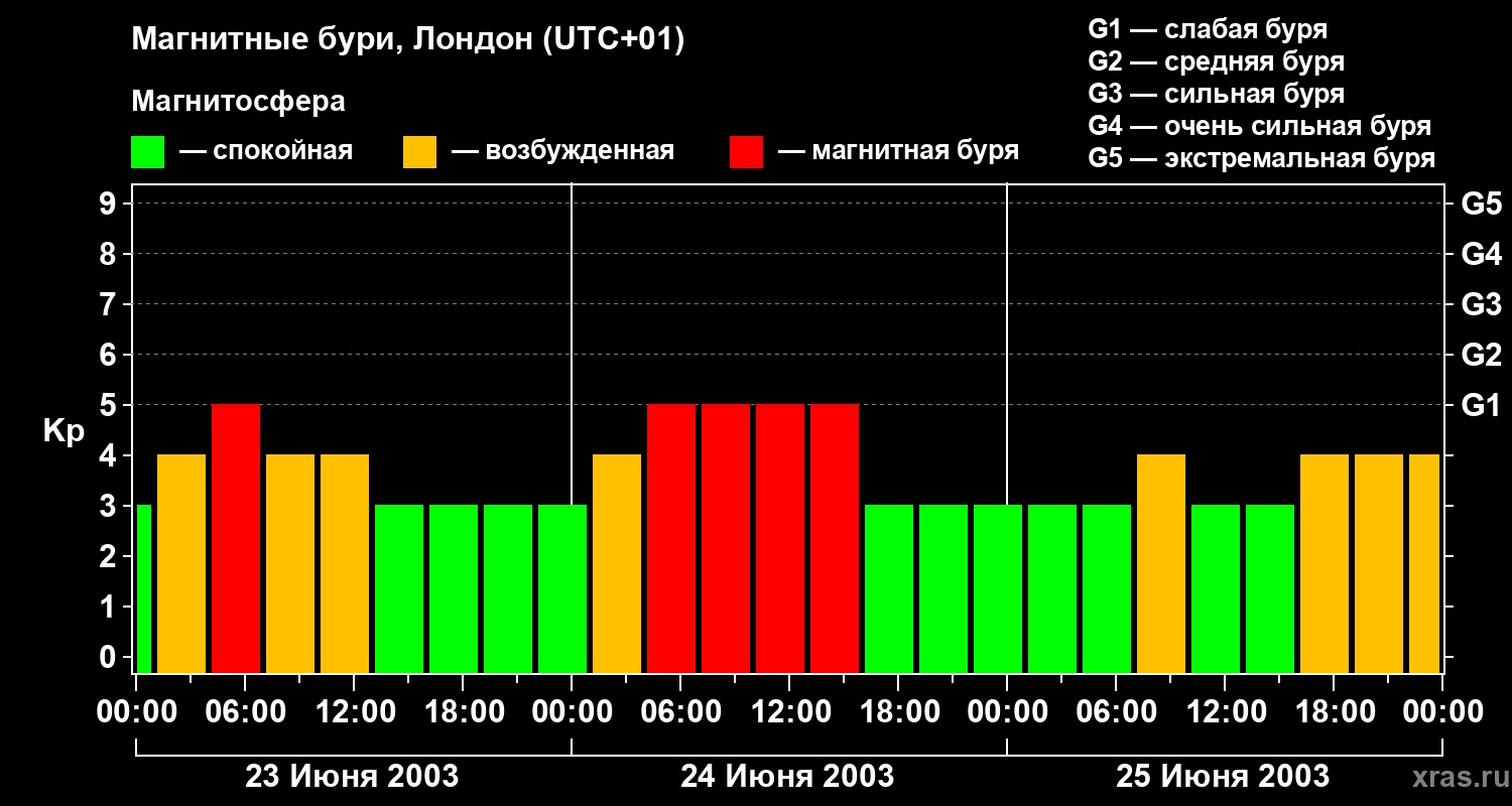 Магнитные бури в Лондоне — 25 июня 2003 года