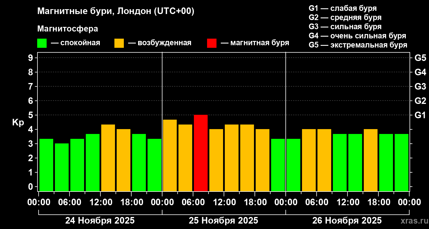 Магнитные бури в Лондоне 26 ноября 2025 года