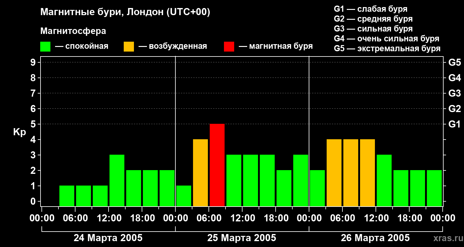 Магнитные бури в Лондоне — 26 марта 2005 года
