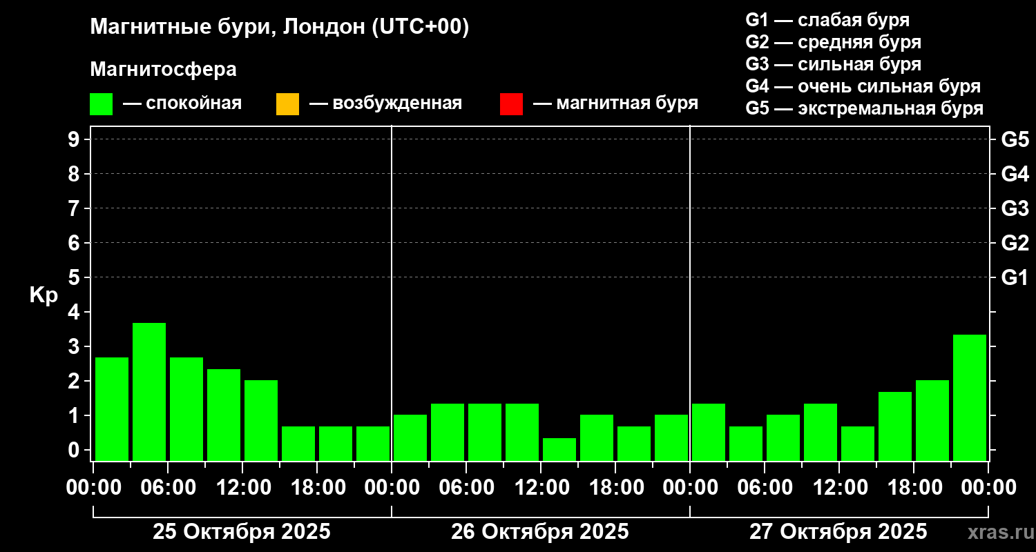 Магнитные бури в Лондоне — 27 октября 2025 года