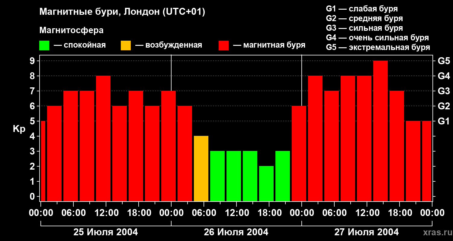 Магнитные бури в Лондоне — 27 июля 2004 года
