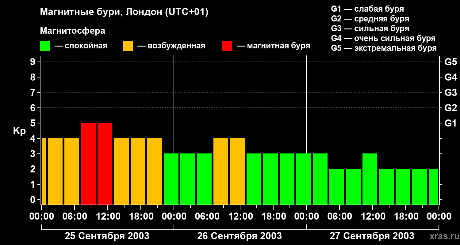 Магнитные бури в Лондоне — 27 сентября 2003 года