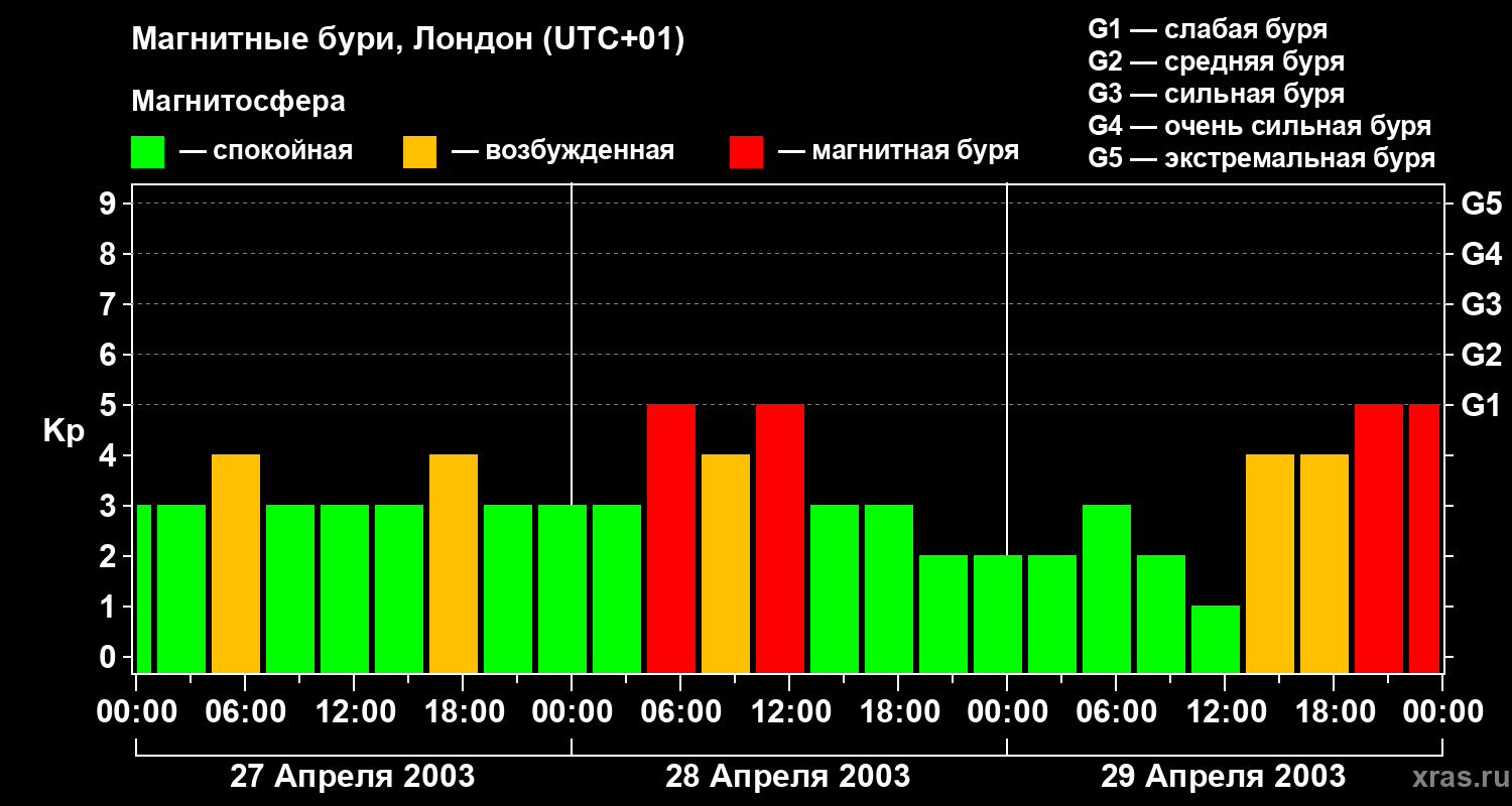 Магнитные бури в Лондоне — 29 апреля 2003 года
