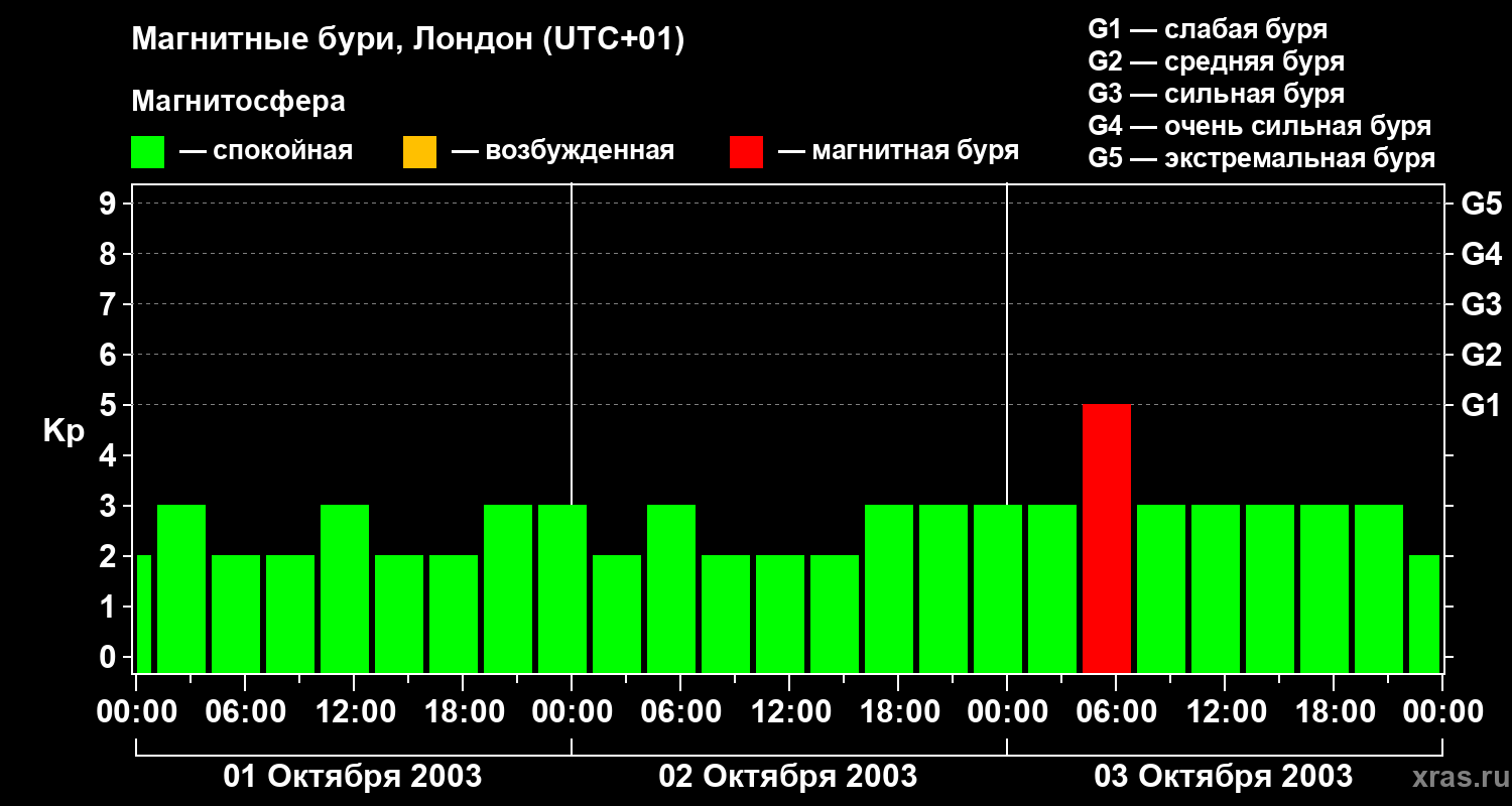 Магнитные бури в Лондоне — 3 октября 2003 года