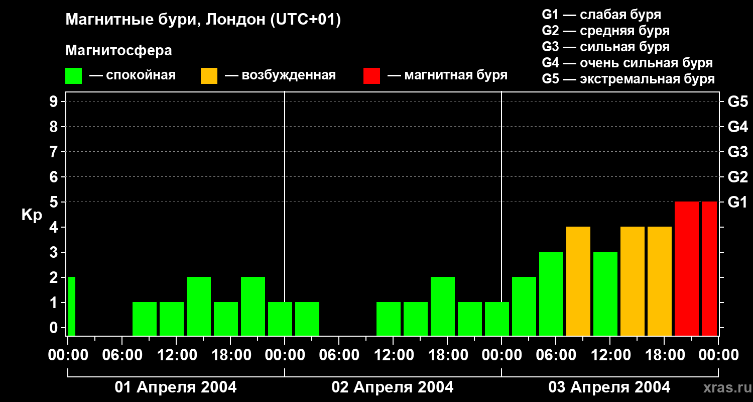 Магнитные бури в Лондоне — 3 апреля 2004 года