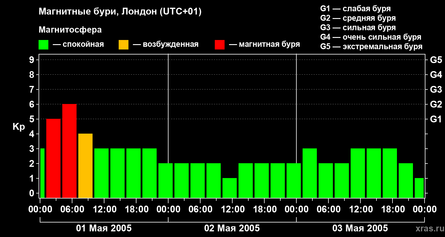 Магнитные бури в Лондоне — 3 мая 2005 года