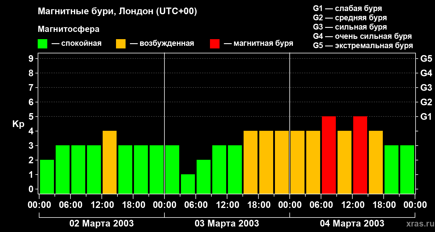 Магнитные бури в Лондоне — 4 марта 2003 года