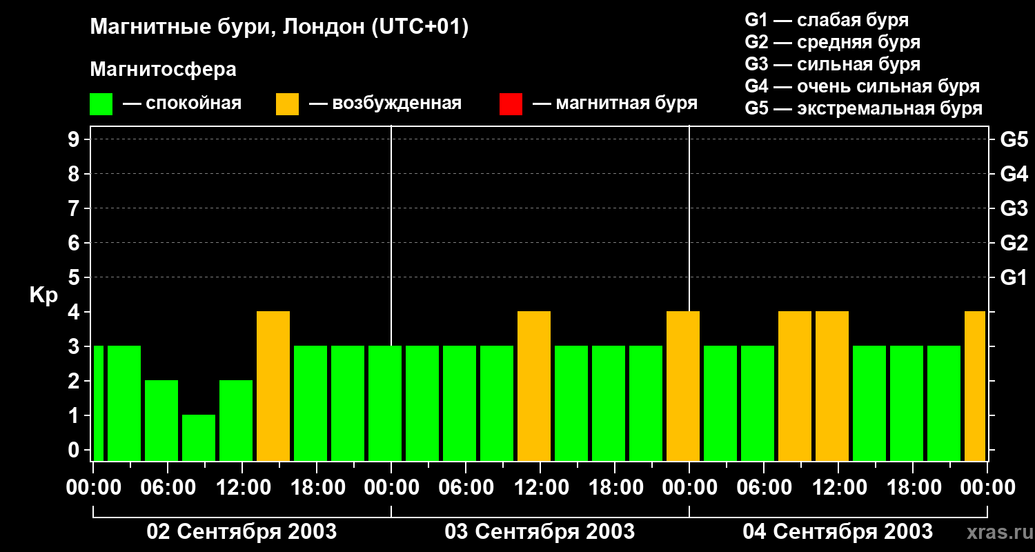 Магнитные бури в Лондоне — 4 сентября 2003 года