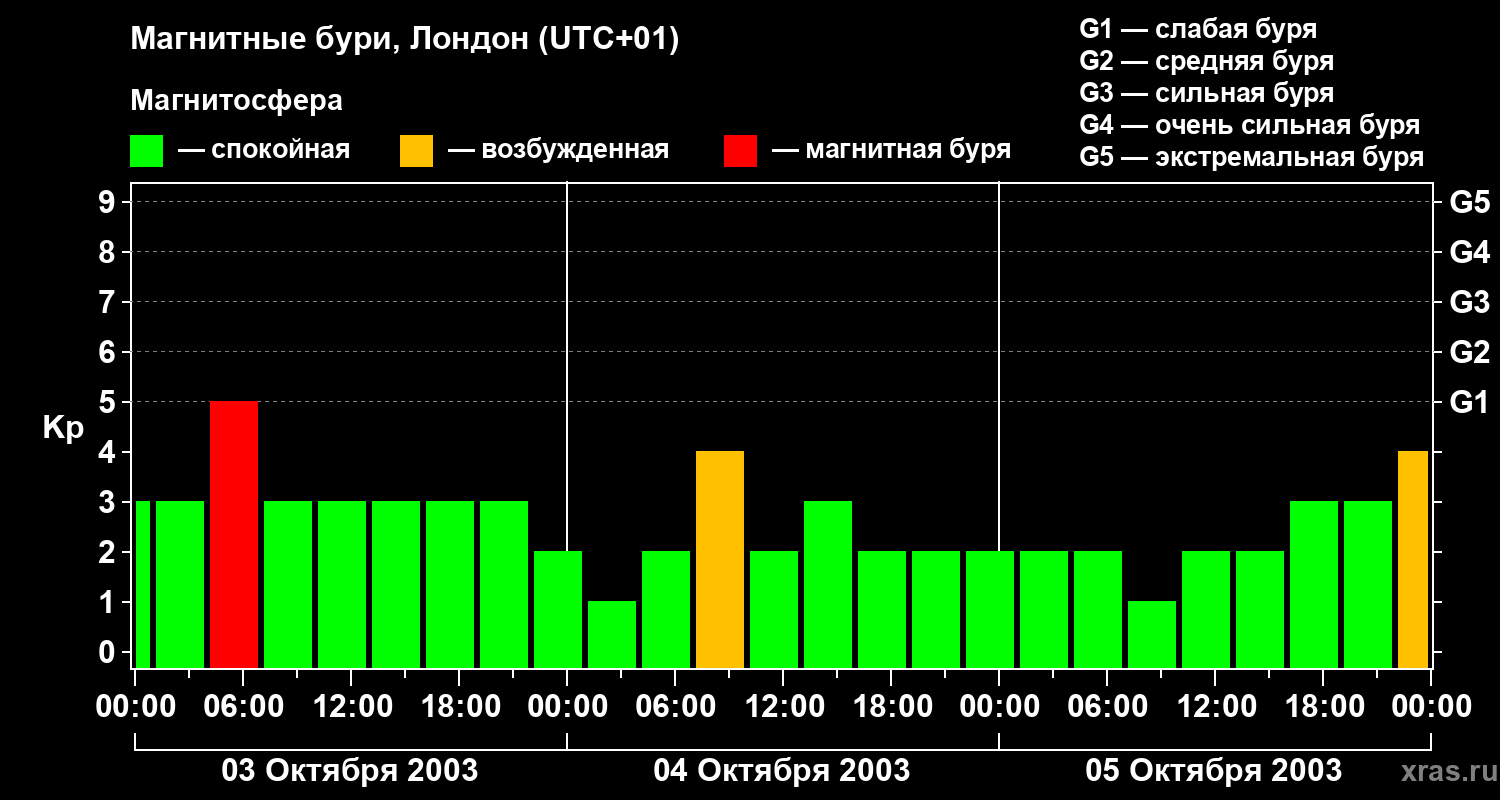 Магнитные бури в Лондоне — 5 октября 2003 года
