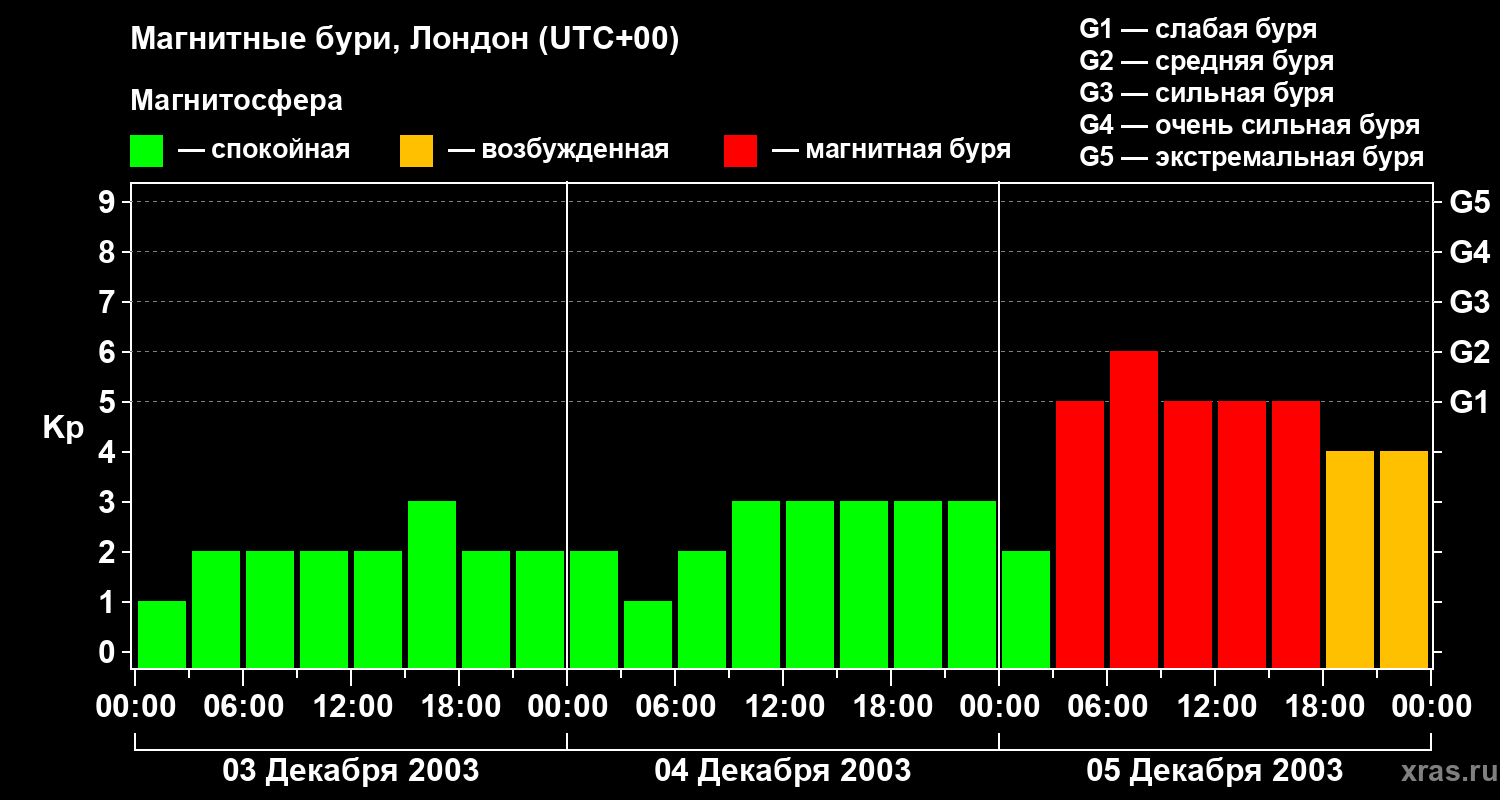 Магнитные бури в Лондоне — 5 декабря 2003 года