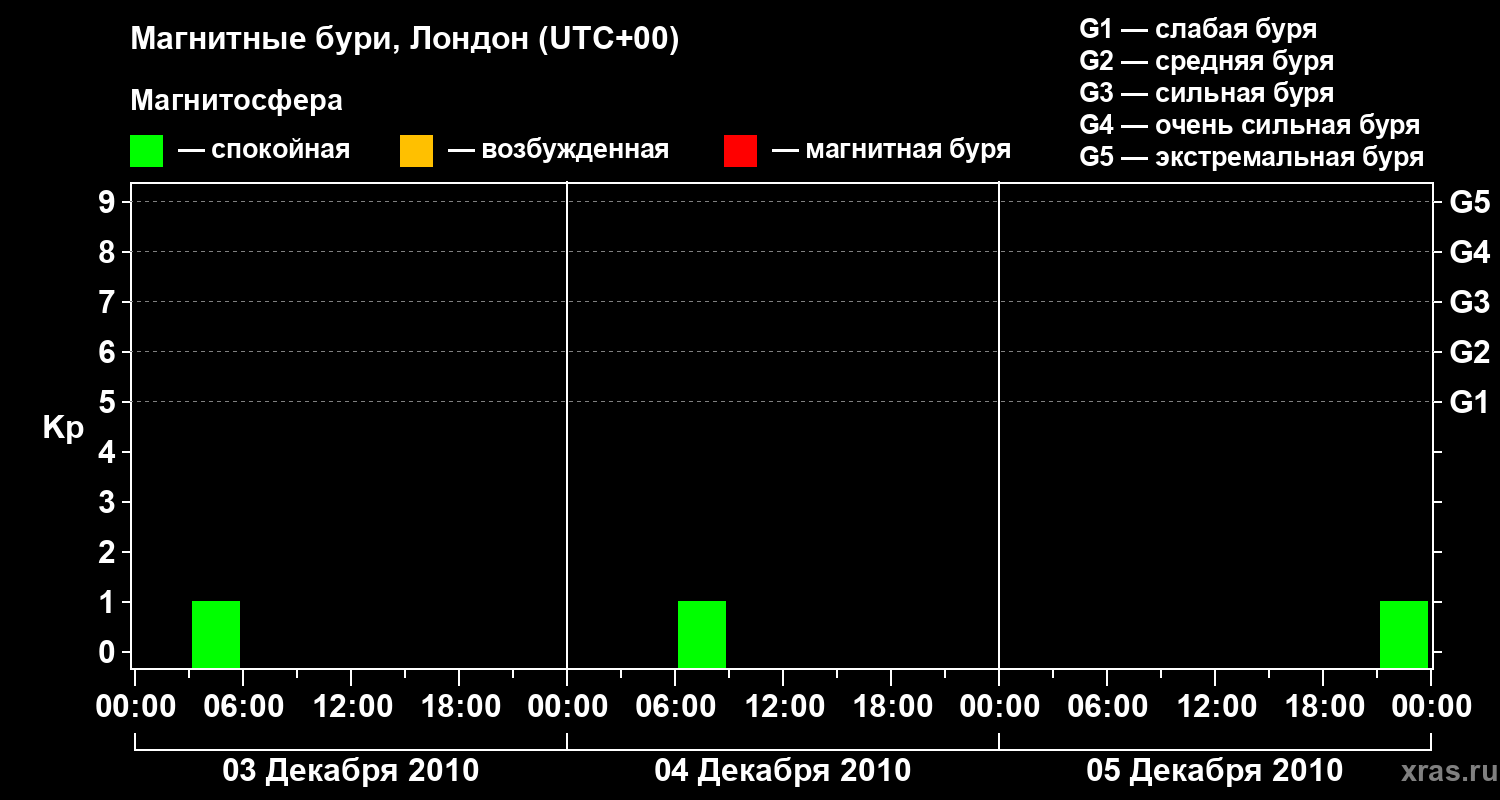 Изменения геомагнитного индекса Kp с 3 по 5 декабря 2010 года для средних широт