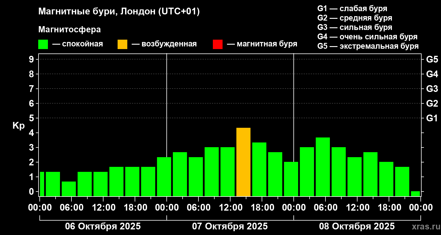 Магнитные бури в Лондоне — 8 октября 2025 года