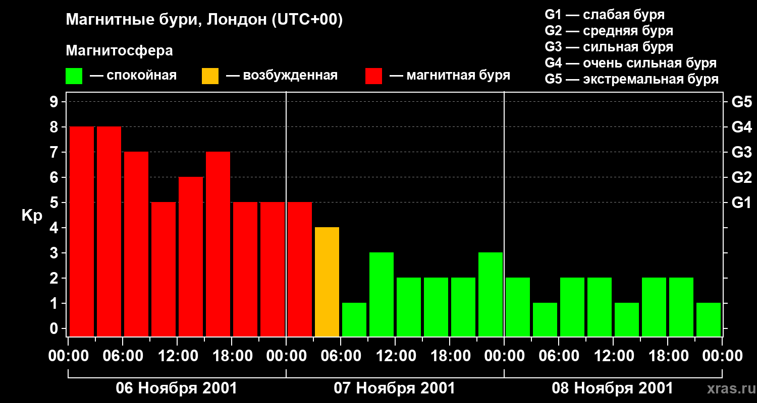 Магнитные бури в Лондоне — 8 ноября 2001 года