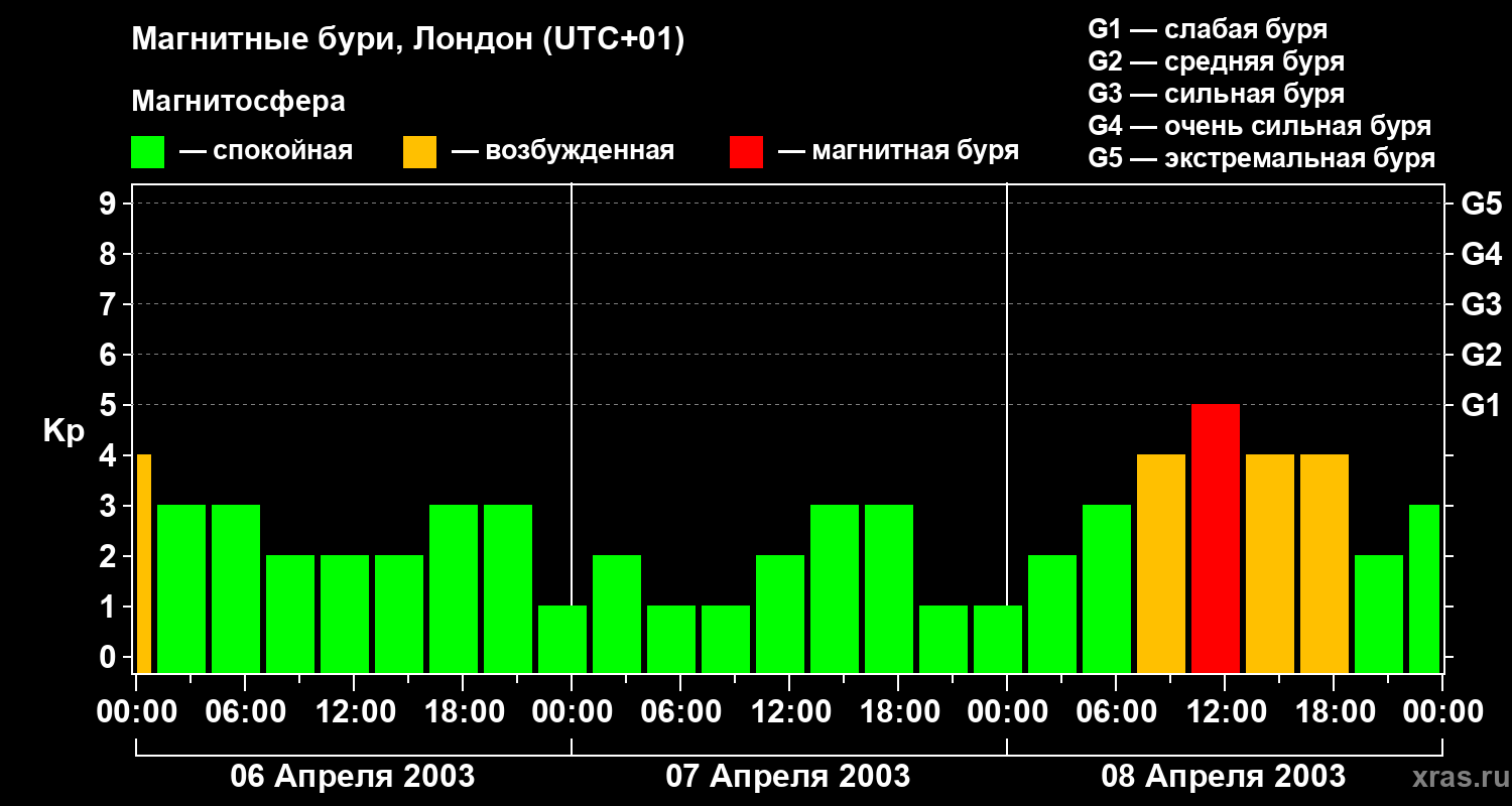 Магнитные бури в Лондоне — 8 апреля 2003 года