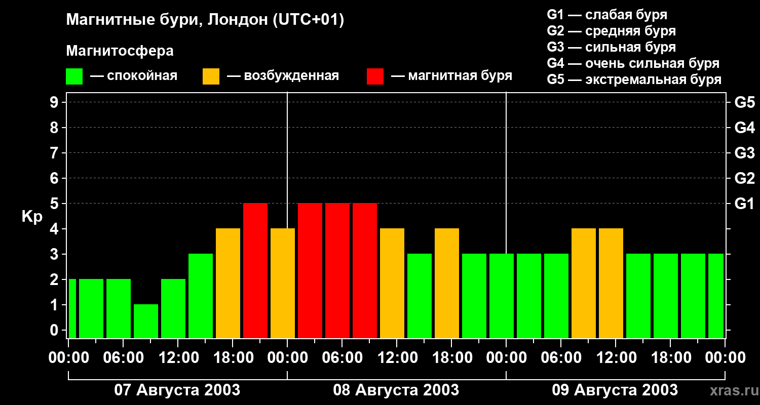 Магнитные бури в Лондоне — 9 августа 2003 года