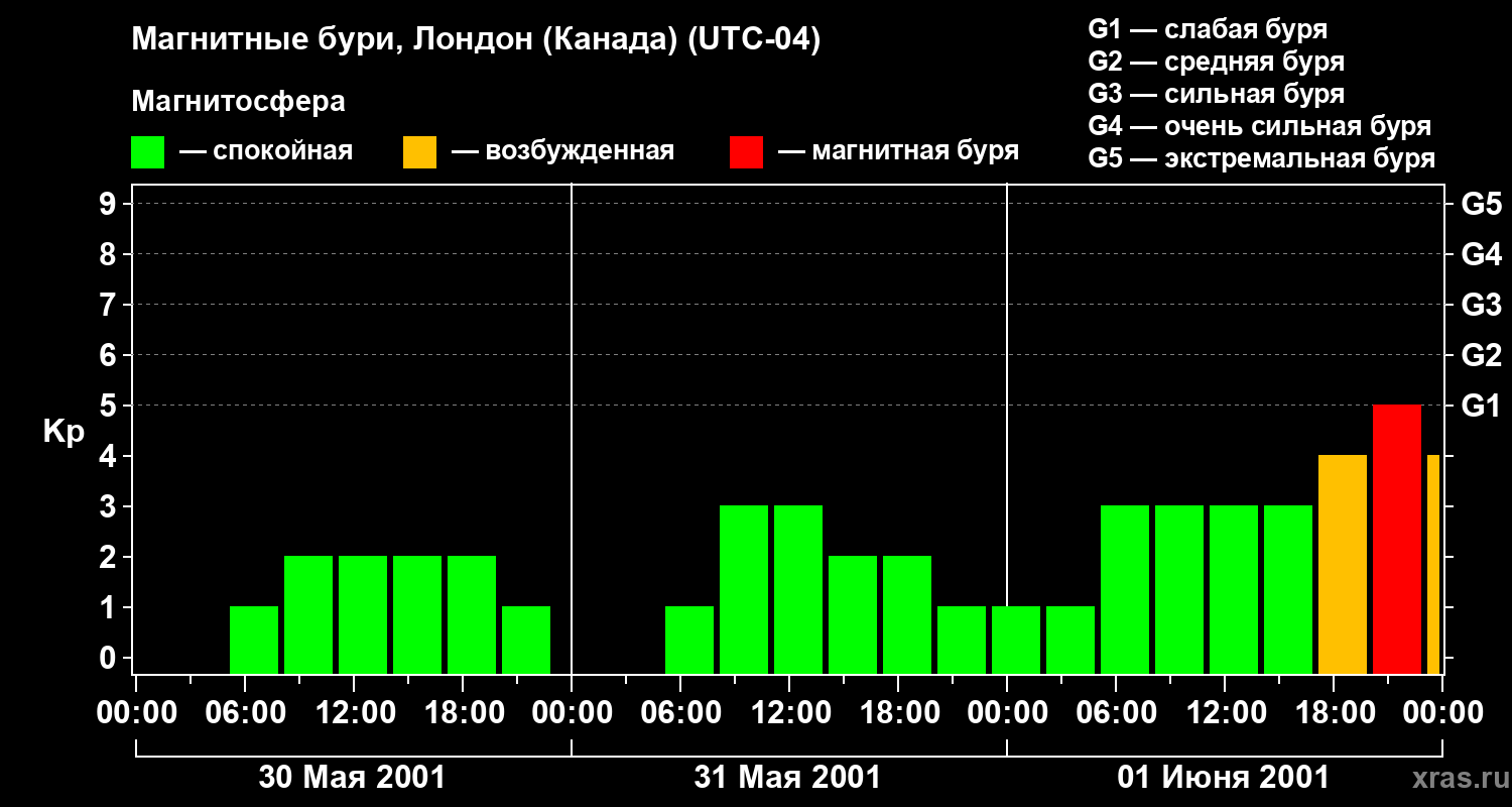 Магнитные бури Лондоне (Канада) — 1 июня 2001 года