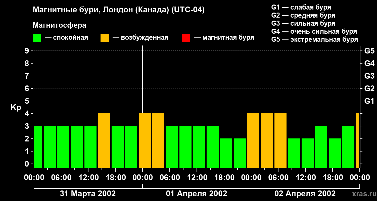 Магнитные бури Лондоне (Канада) 2 апреля 2002 года